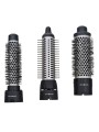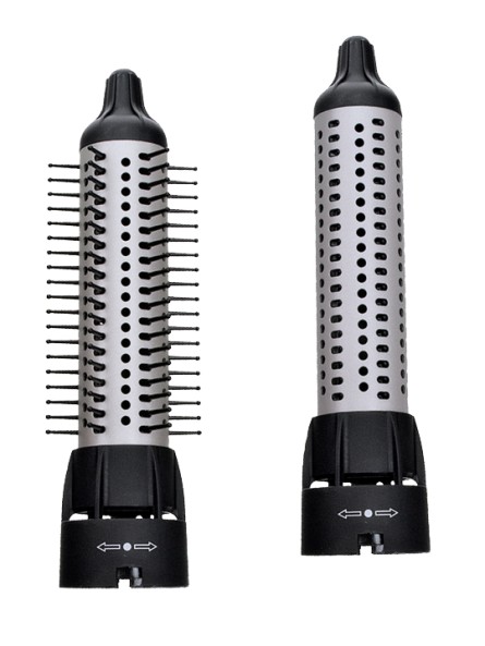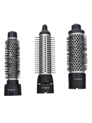 Livrée avec : 3 brosses rondes thermiques interchangeables (Ø 25 mm pour les petites boucles, Ø 30 mm et Ø 38 mm pour les ondulations et le volume)