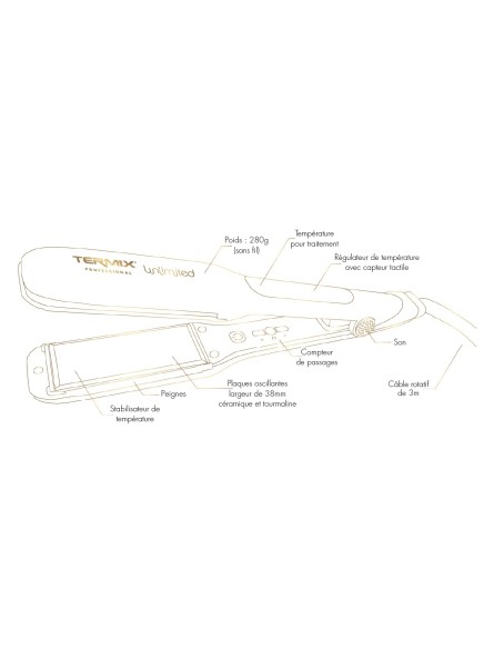 • Compteur de passages : fonction innovante permettant de programmer et de suivre le nombre exact de passages requis pour chaque traitement capillaire pour éviter l’utilisation de chaleur inutile