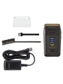 Livrée avec : protège grille, brosse de nettoyage, brosse de pré-rasage, chargeur