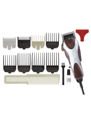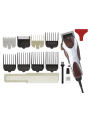 Livrée avec : 8 contre peignes (1.5, 3, 4.5, 6, 10, 13, 19 et 25mm), 1 peigne flat top, 1 brosse de nettoyage, 1 burette d'huile, 1 protège lame