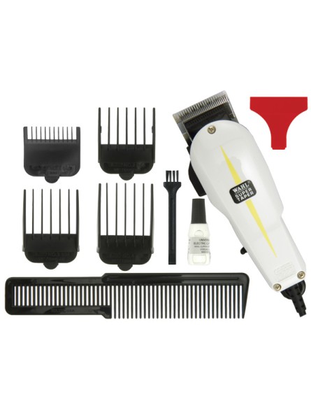 Livrée avec : 4 contre peignes (3, 6, 10 et 13mm), peigne flat top, brosse de nettoyage, huile, protège lame