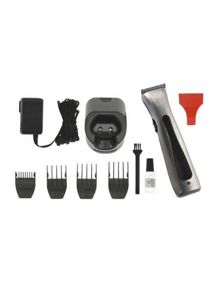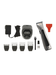 Livrée avec : 4 contre peignes (3, 6, 10 et 13 mm), brosse de nettoyage, huile, socle de charge, chargeur, protège lame
